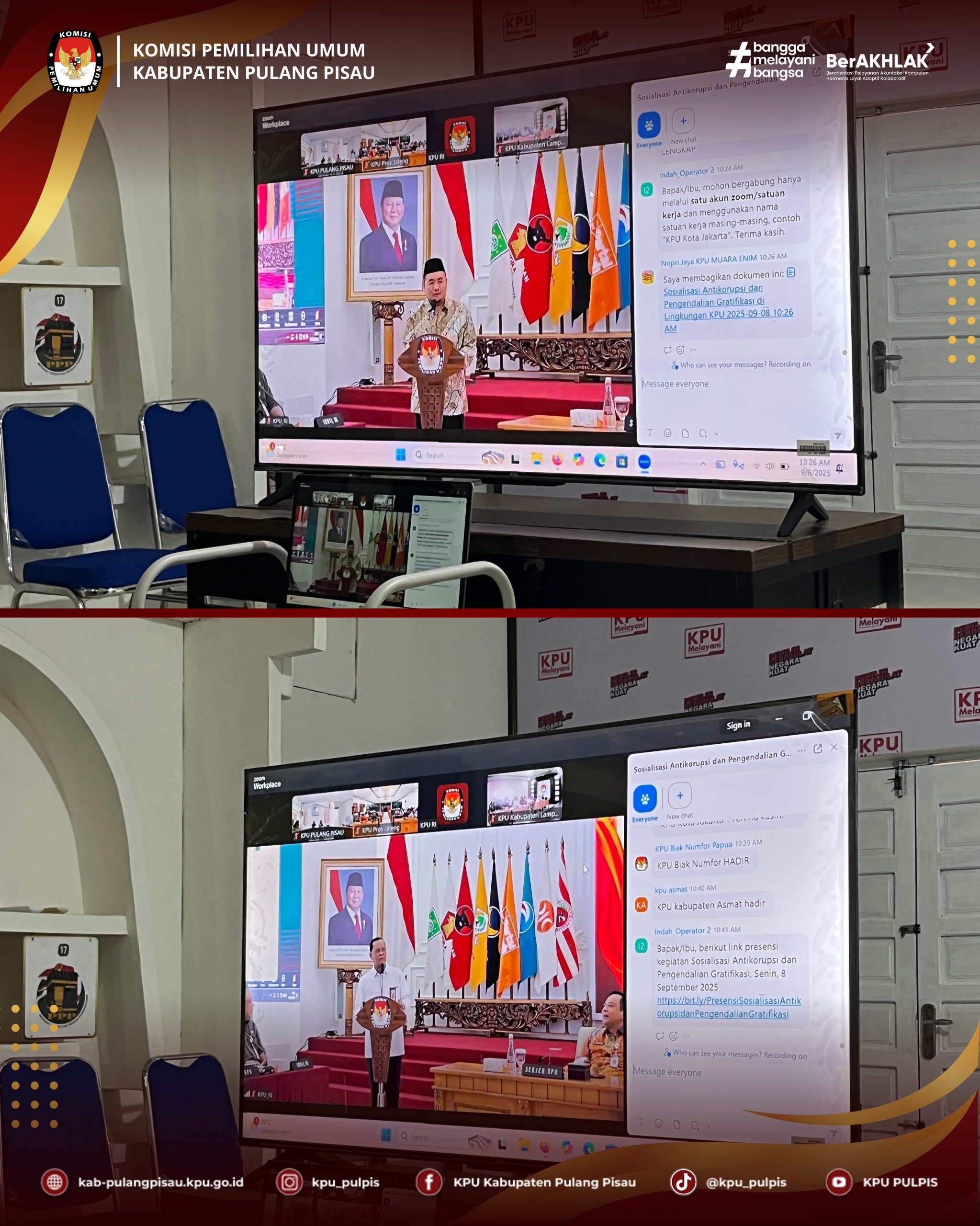 Seluruh pegawai KPU Kabupaten Pulang Pisau turut hadir mengikuti kegiatan ini secara virtual sebagai bentuk komitmen dalam meningkatkan integritas, pemahaman, dan kesadaran akan budaya antikorupsi serta pengendalian gratifikasi.