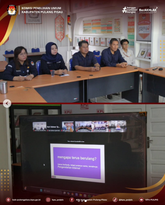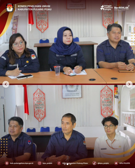 KPU Kabupaten Pulang Pisau mengikuti Rapat Koordinasi Pengawasan dalam Rangka Peningkatan dan Penguatan Kinerja Pengawasan di lingkungan Sekretariat Jenderal KPU. Dalam kegiatan ini diikuti oleh Ketua, Anggota beserta tim Sub Bagian Teknis dan Hukum pada Selasa, 21 Oktober 2025.
