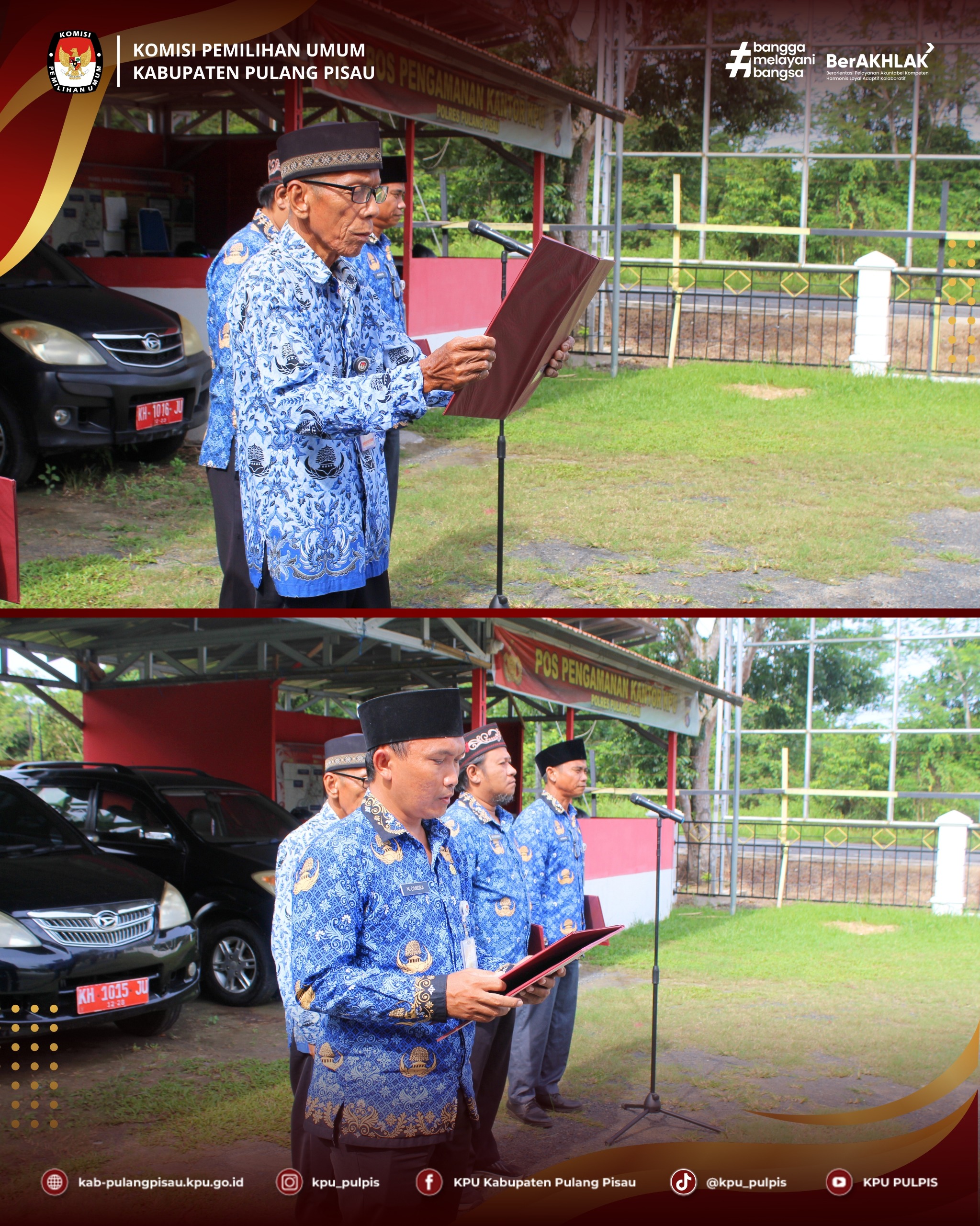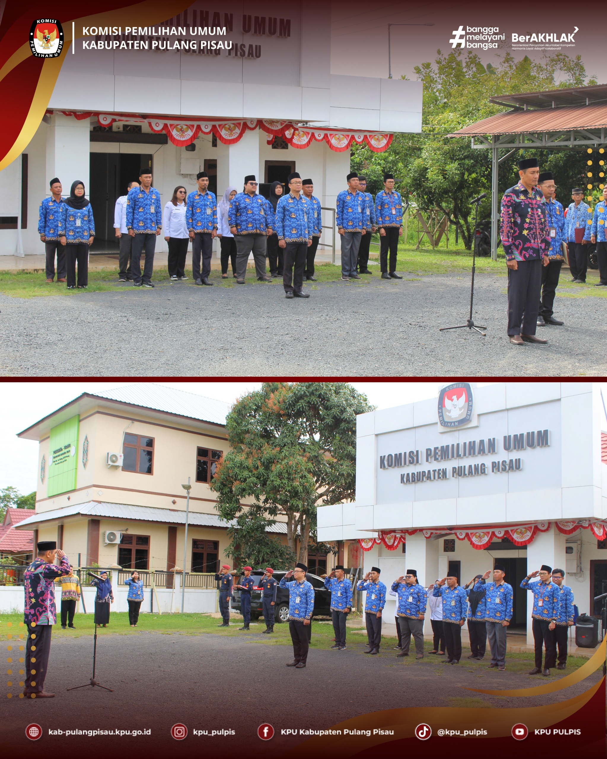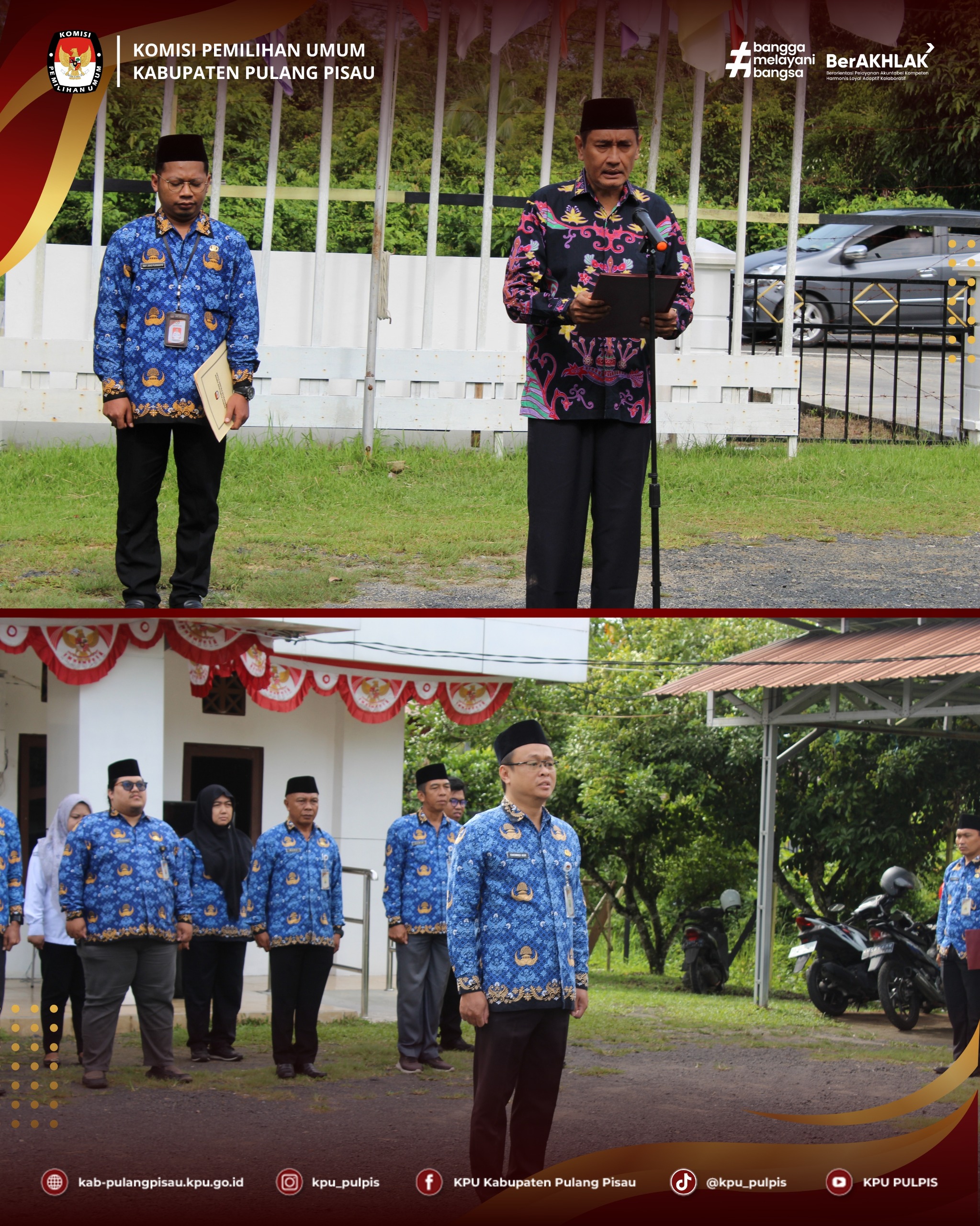 Upacara dipimpin oleh Bapak Rakhmadi Nor, selaku Kasubbag Keuangan, Umum, dan Logistik (KUL), serta Pembina Apel oleh Bapak M. Zainurrohman, Anggota KPU Kabupaten Pulang Pisau.