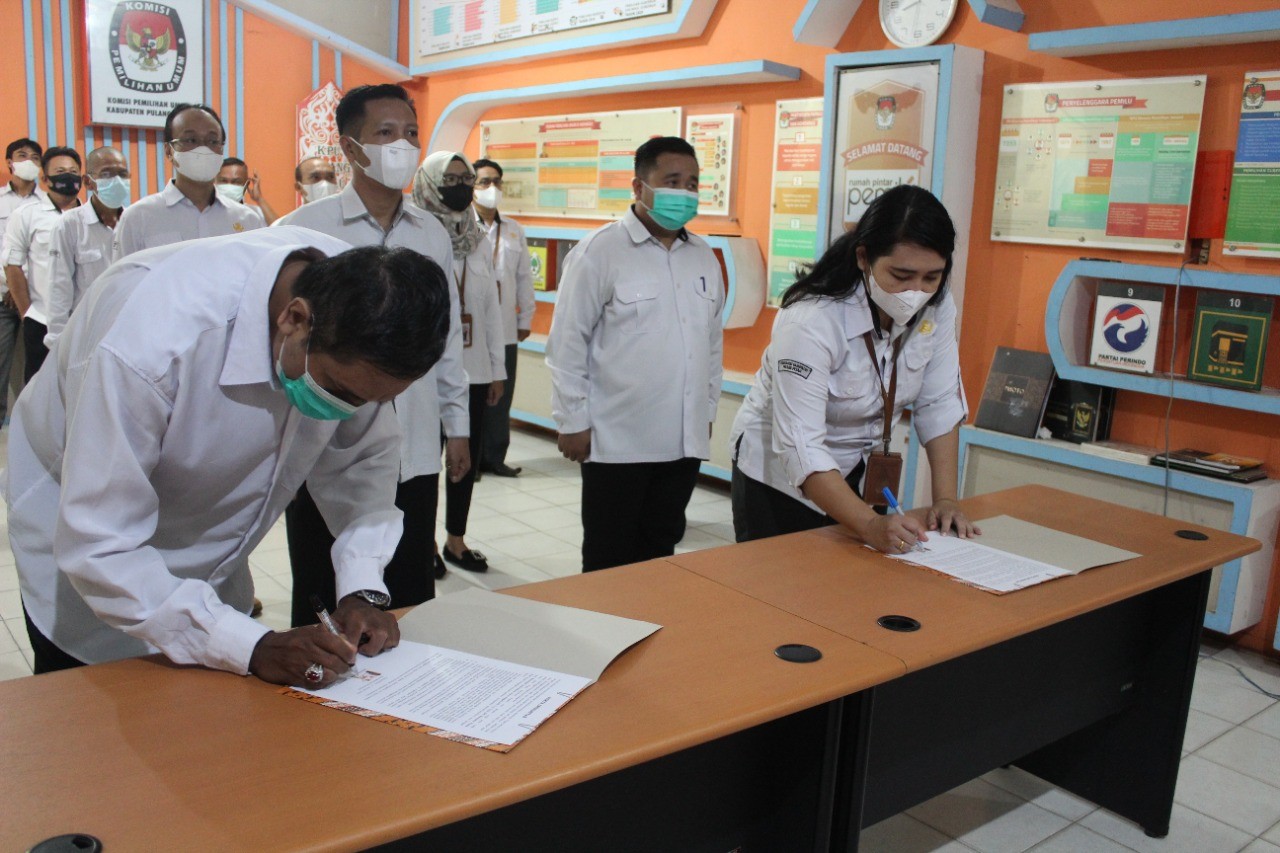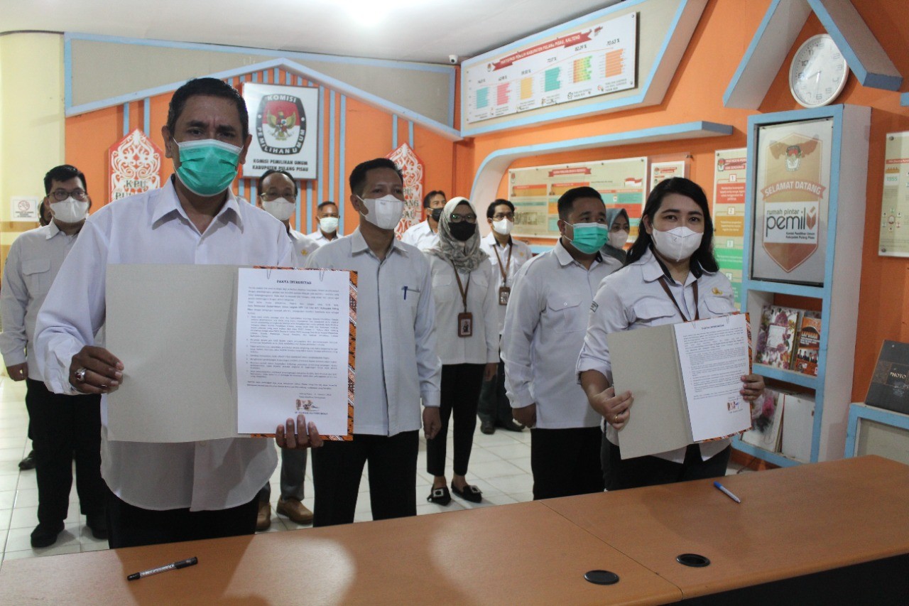 Pada acara tersebut juga dilaksanakan penandatanganan Pakta integritas yang oleh seluruh jajaran KPU Kabupaten Pulang Pisau dan secara simbolis ditandatangani oleh Komisioner Divisi Hukum dan SDM M.Zainurrohman serta Kassubbag Hukum dan SDM Cory Pramita Sartiana sebagai salah satu implementasi Pencanangan Pembangunan Zona Integritas Menuju WBK Dan WBBM.(ans)