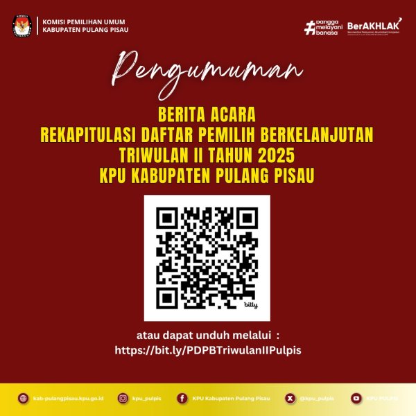 Berikut Berita Acara Rekapitulasi Daftar Pemilih Berkelanjutan Komisi Pemilihan Umum Kabupaten Pulang Pisau Triwulan ll Tahun 2025.