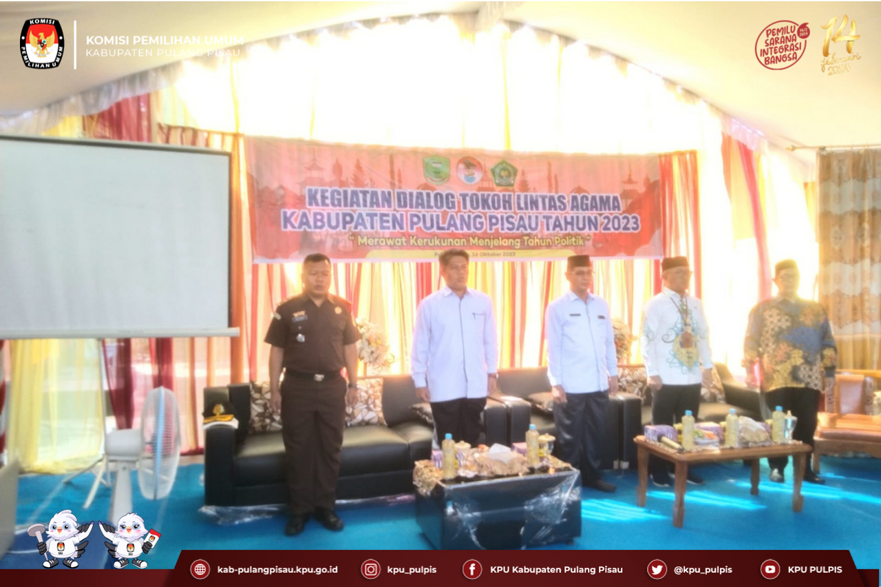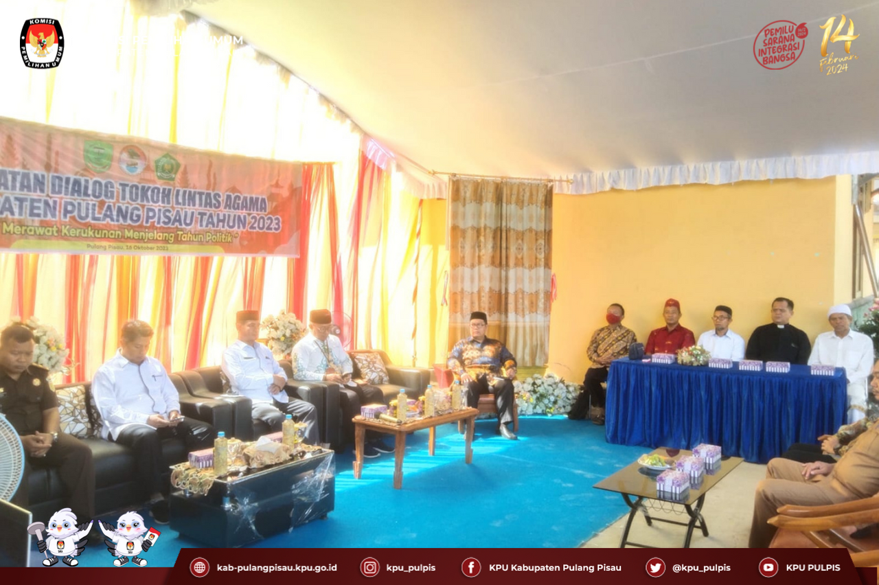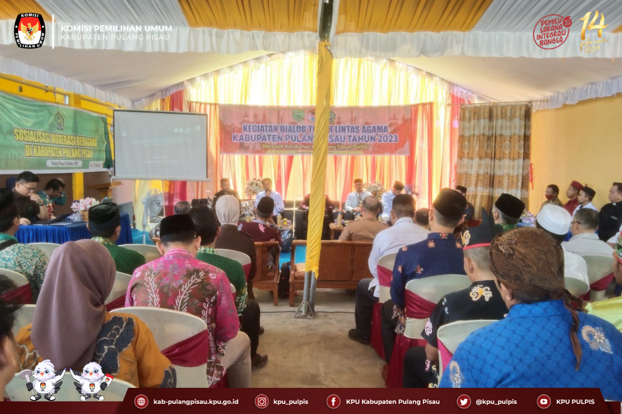 Ketua KPU Roby Hudin hadir sebagai Narasumber pada Kegiatan Dialog Tokoh Lintas Agama oleh Forum Kerukunan Umat Beragama Kabupaten Pulang Pisau Tahun 2023 dengan tema "Merawat Kerukunan Menjelang Tahun Politik" di Desa Hanjak Maju Kabupaten Pulang Pisau pada hari Senin (16/10/2023).
