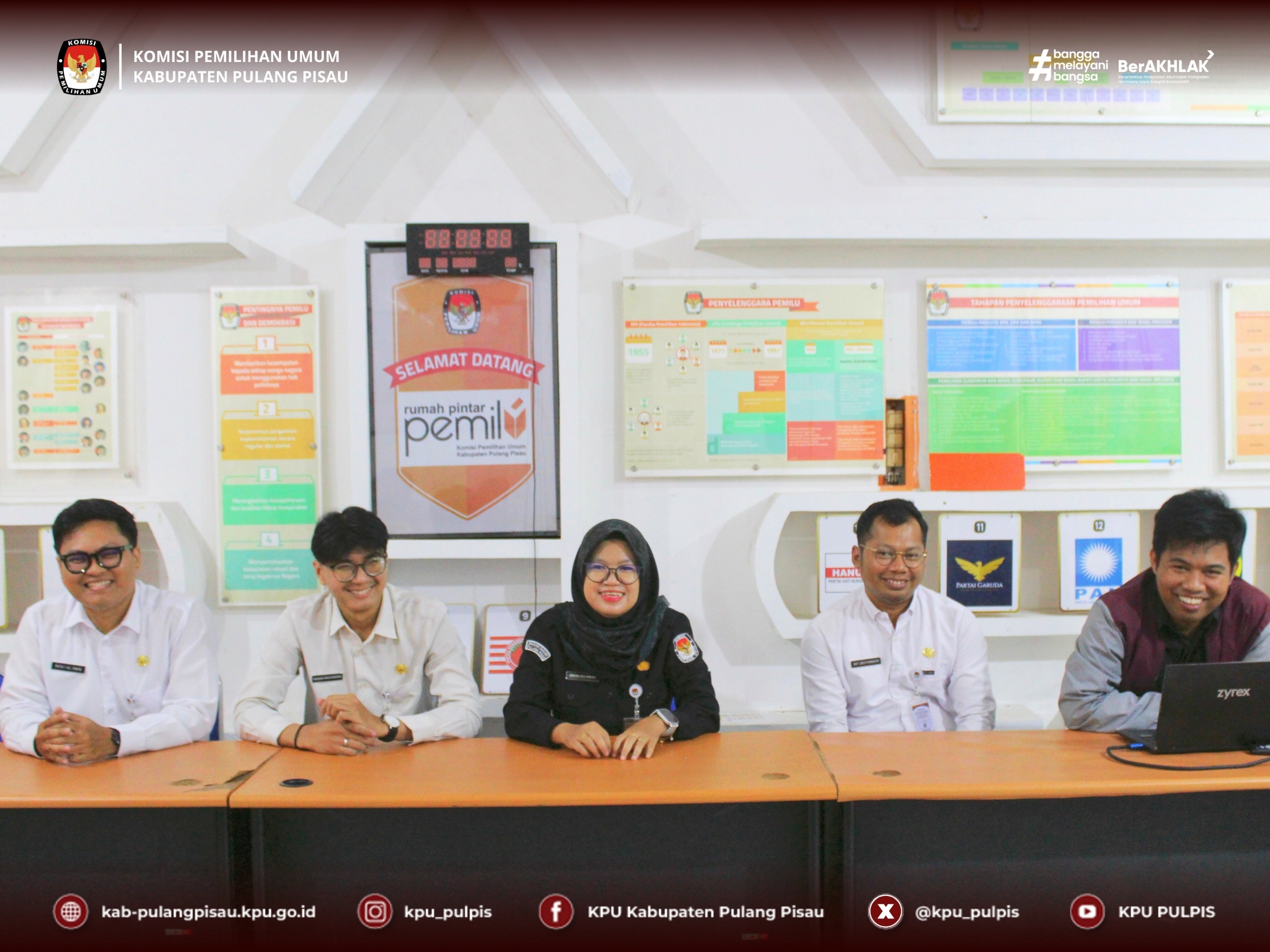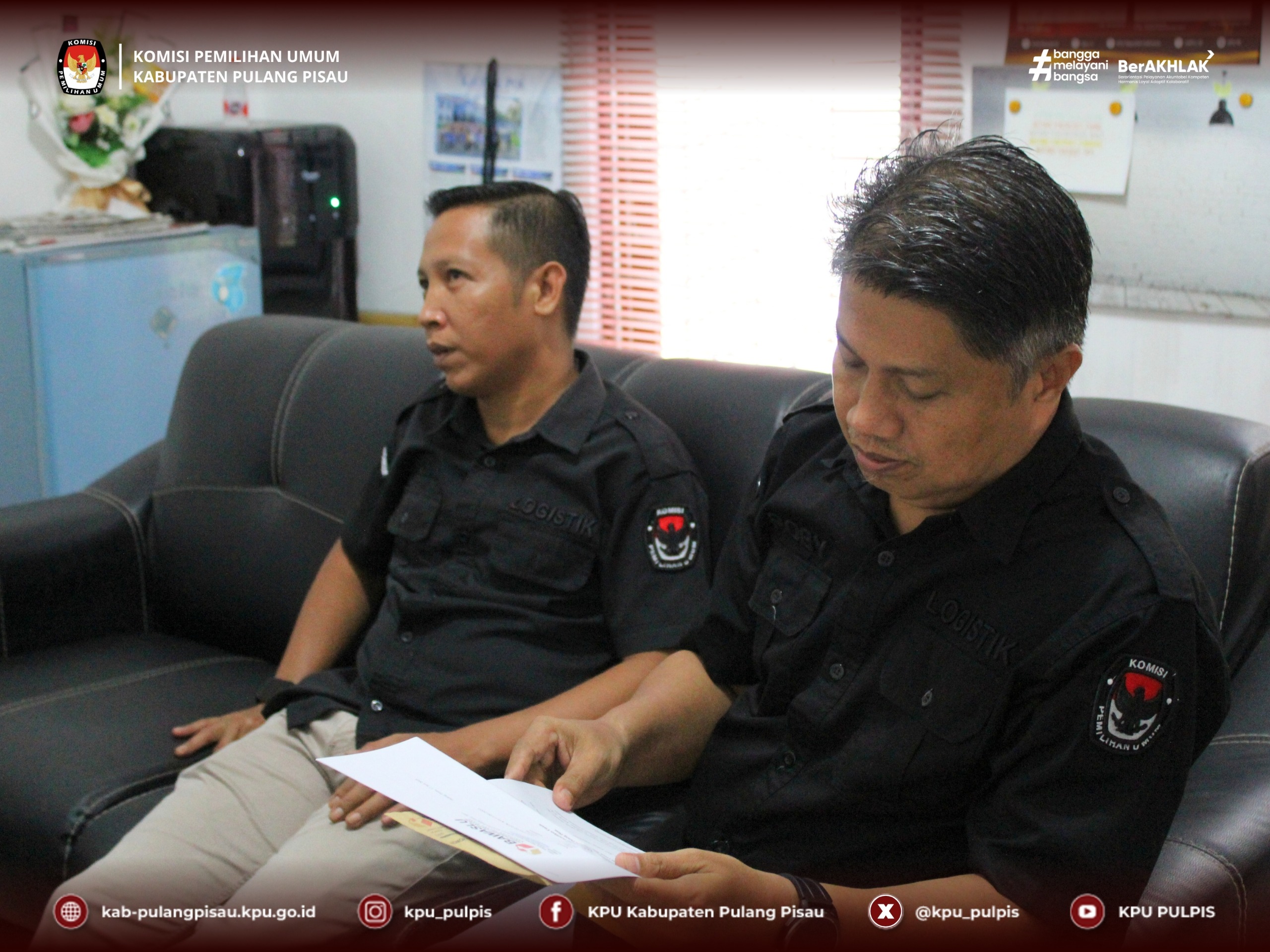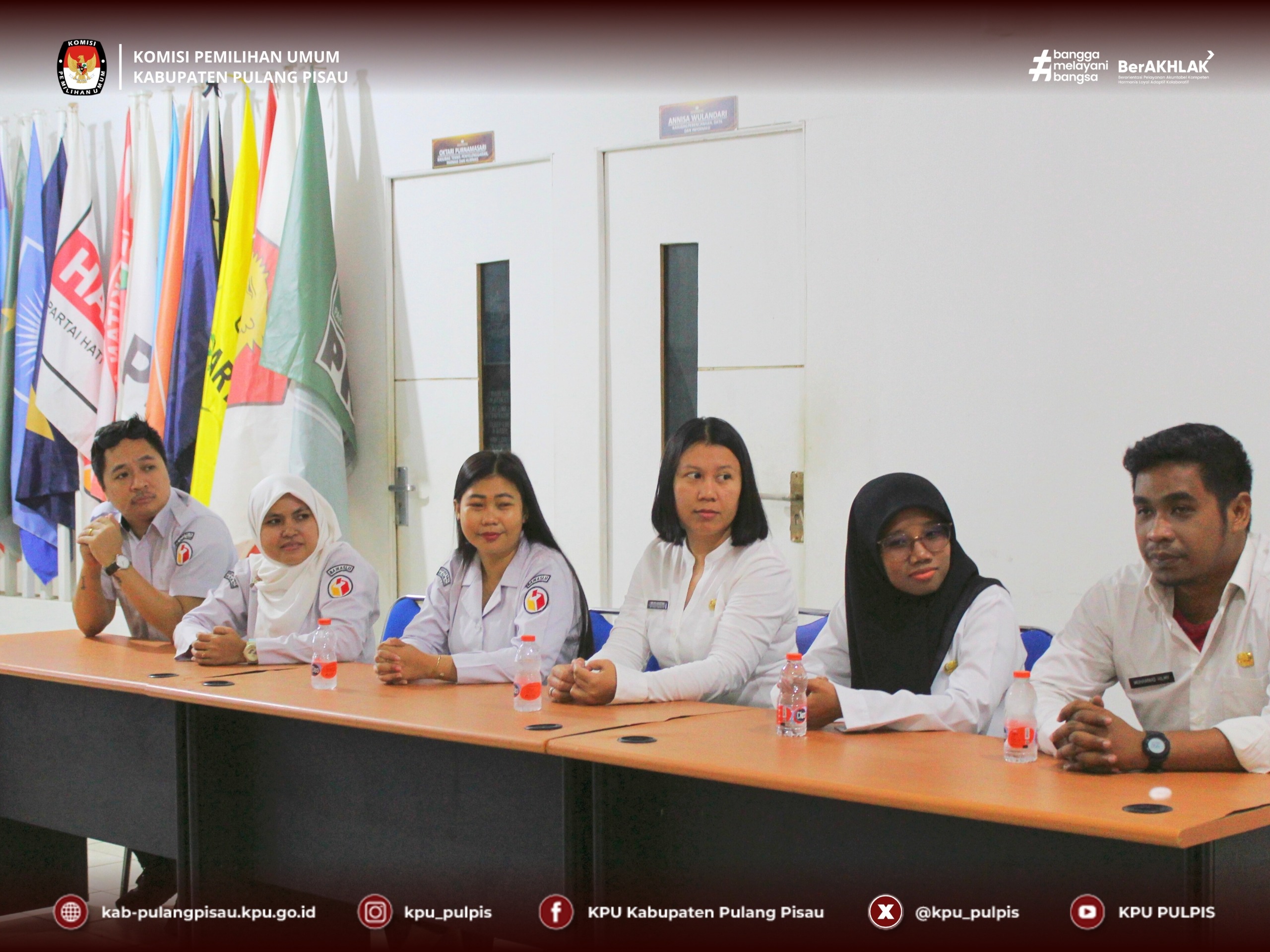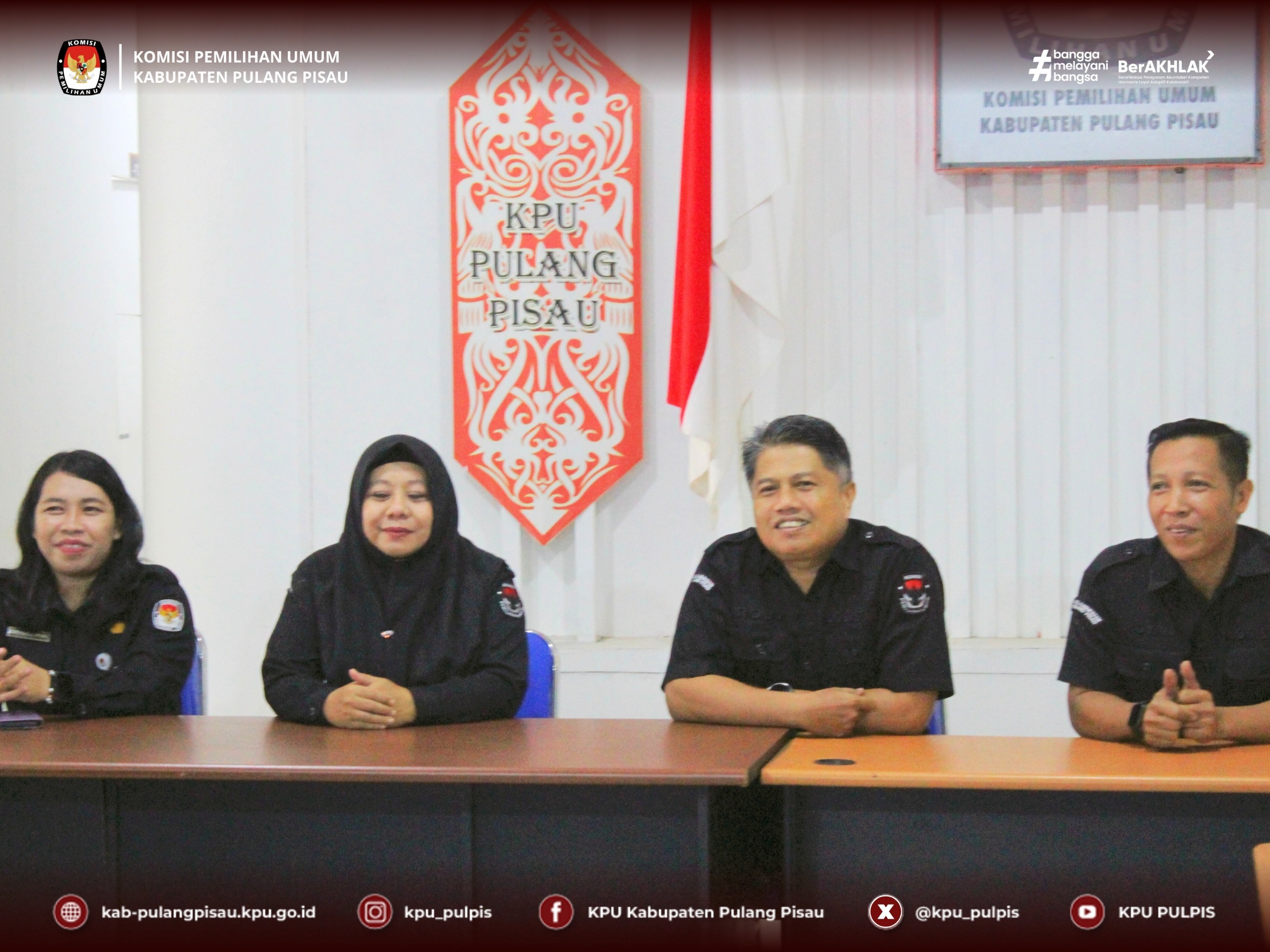 Menerima kehadiran tersebut Ketua KPU Kabupaten Pulang Pisau, Roby Hudin, didampingi oleh Royan Hanapi dan Vivi Herlina. Bawaslu Kabupaten Pulang Pisau diwakili oleh Rendy Christian dan Sri Rahmawati beserta staff Sekretariat.