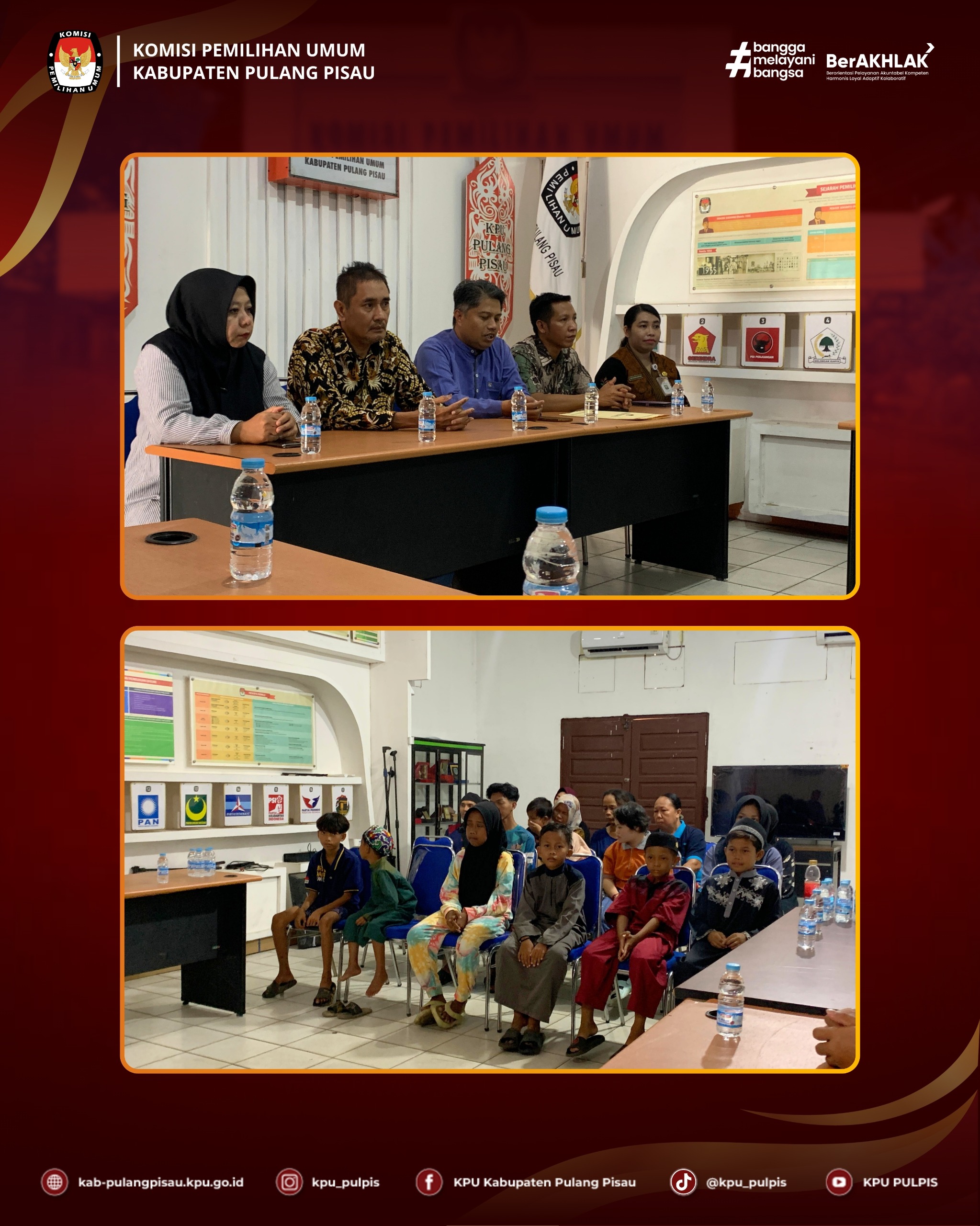 Dalam rangka menindaklanjuti surat edaran dari KPU RI tanggal 23 Juli 2025 tentang Santunan Anak Yatim di Lingkungan KPU, KPU Kabupaten Pulang Pisau melaksanakan kegiatan Santunan dan Doa Bersama Anak Yatim pada Jumat, 25 Juli 2025.