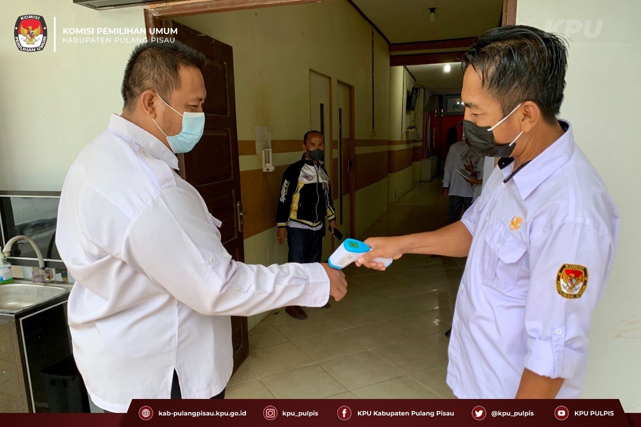 Kegiatan kerja pada satuan kerja KPU Kabupaten Pulang Pisau dilaksanakan tetap dengan menerapkan protokol kesehatan dan pencegahan penyebaran Covid-19. (Co)