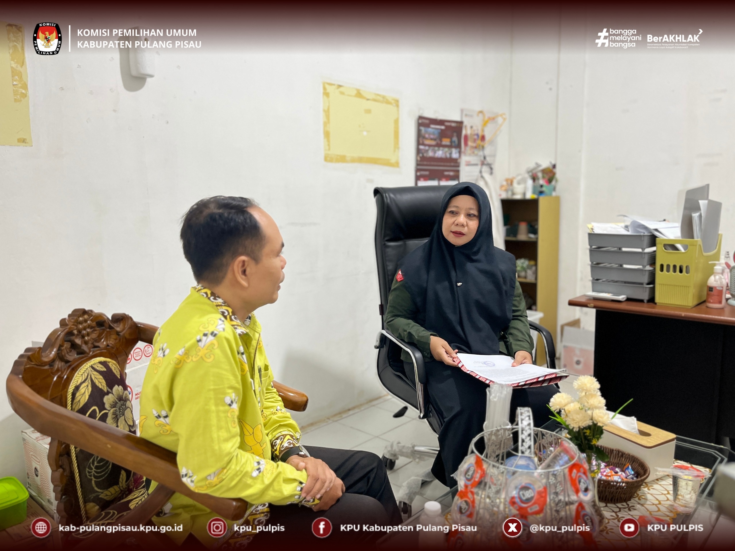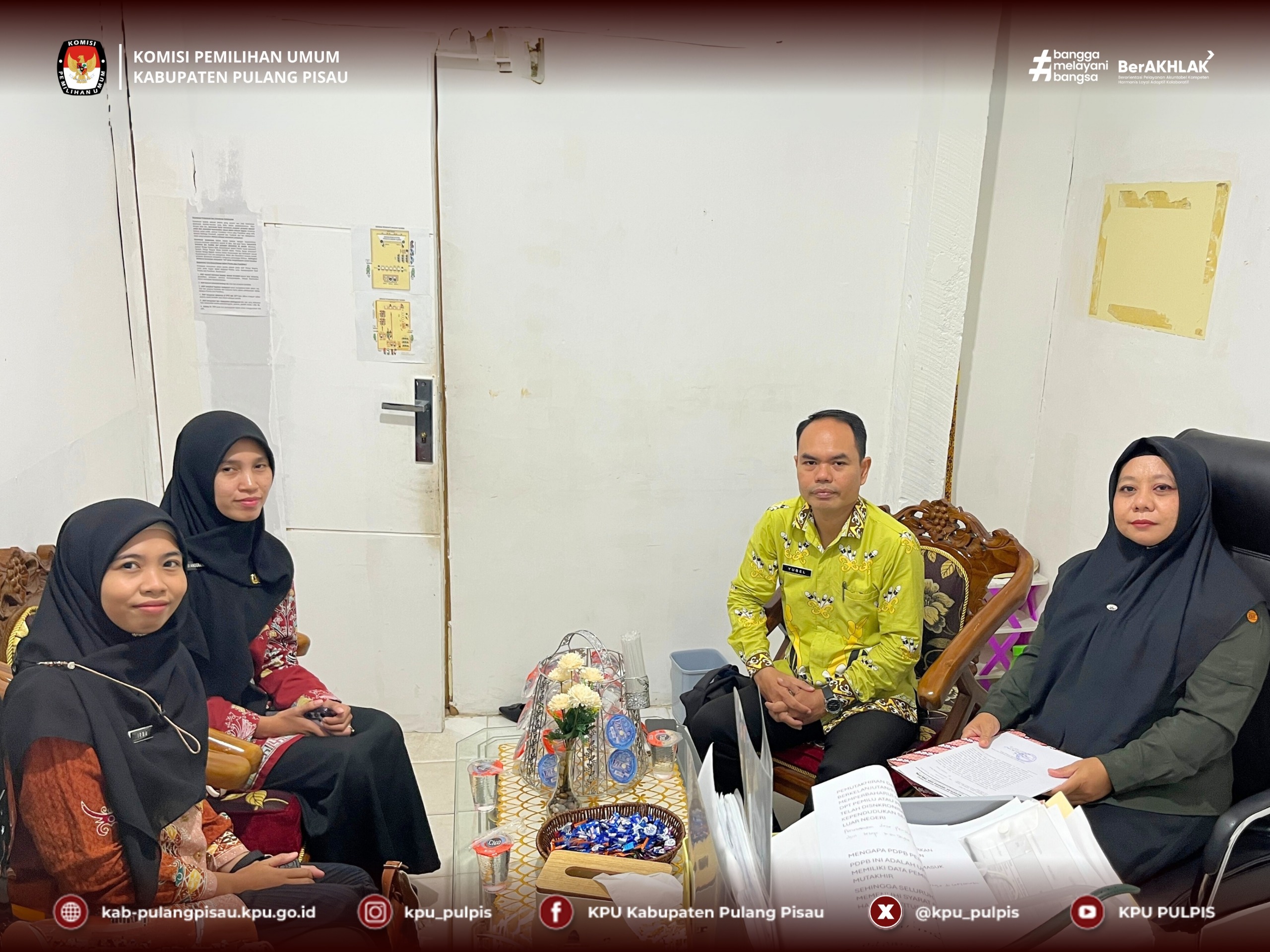 KPU Kabupaten Pulang Pisau menerima kunjungan koordinasi dari Kesbangpol Kabupaten Pulang Pisau pada hari Kamis, tanggal 19 Juni 2025.