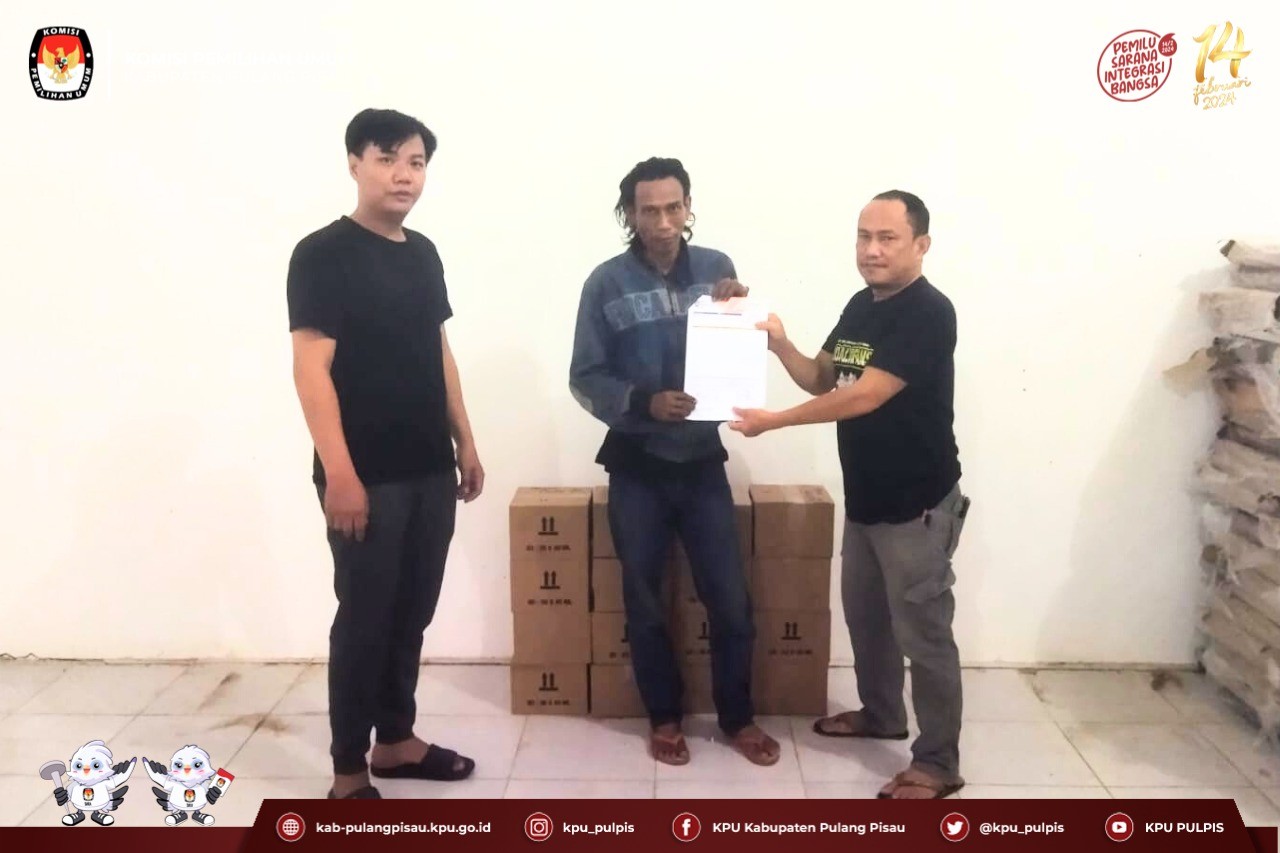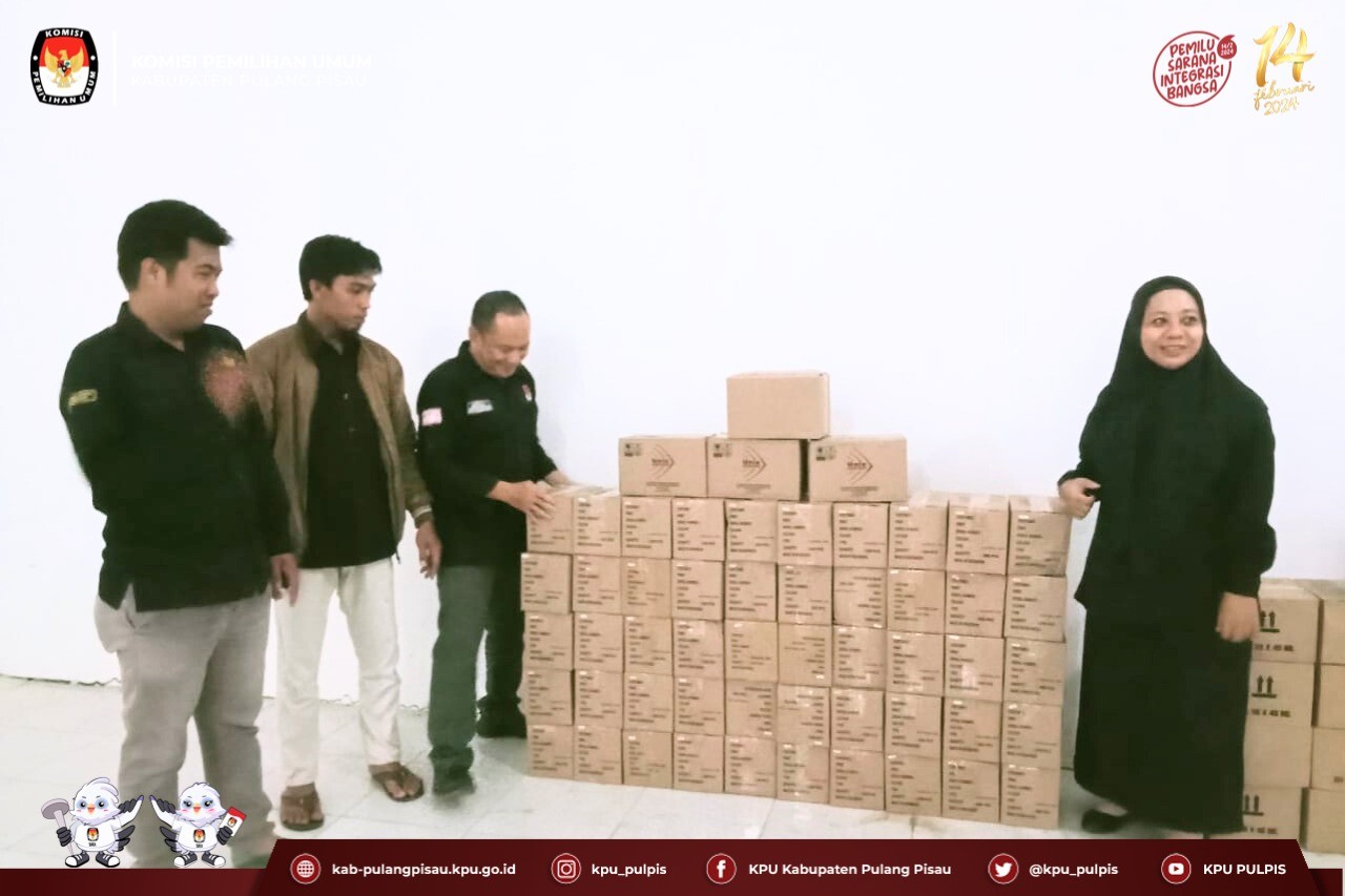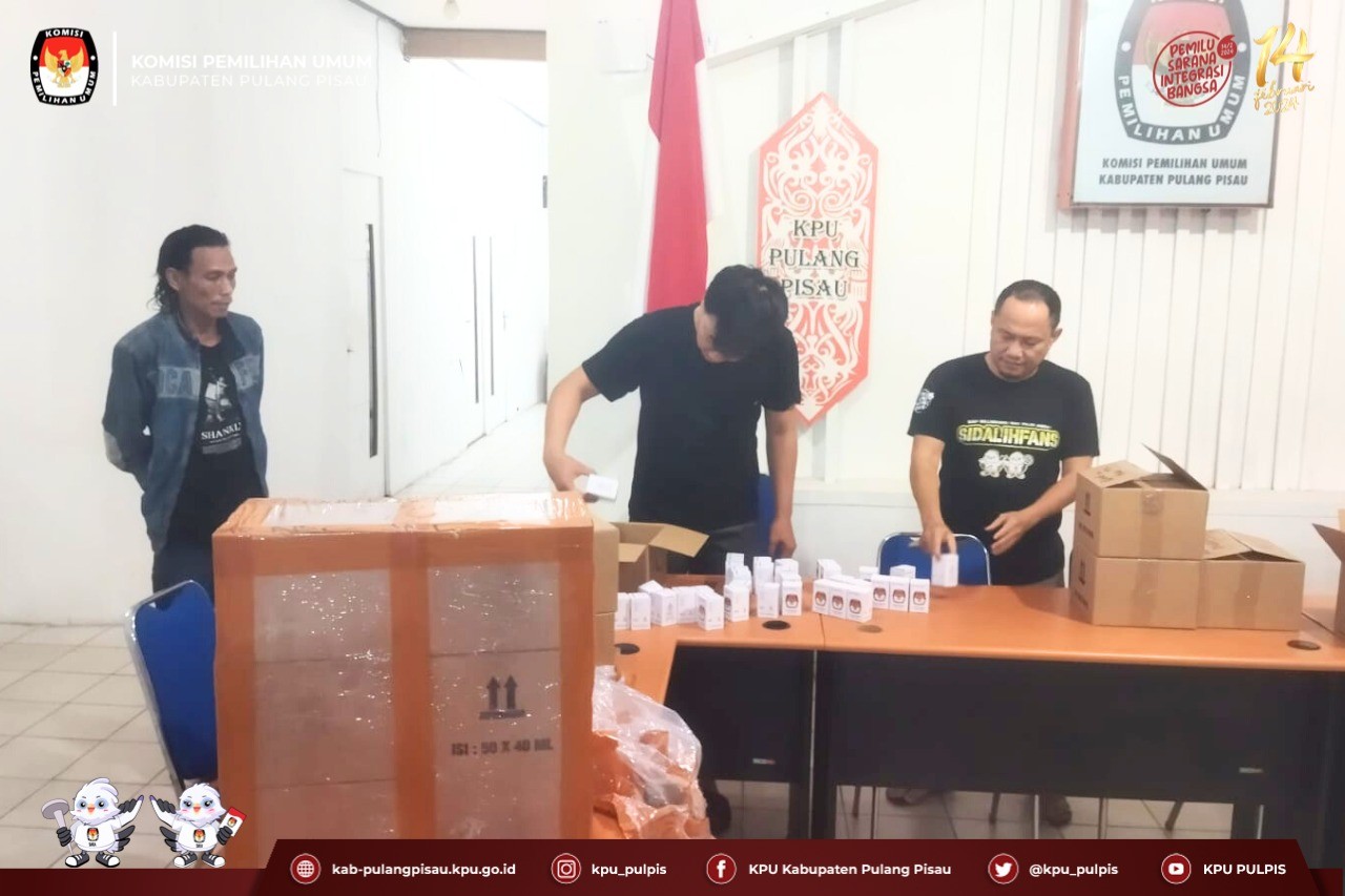 Pada hari Rabu (01/11/2023) KPU Kabupaten Pulang Pisau menerima pengiriman logistik Pemilu Tahun 2024 berupa Tinta sebanyak 834 botol dari Penyedia PT. Kudo Indonesia Jaya dan Segel Plastik Pengganti Gembok sebanyak 10.842 pcs dari penyedia PT. Karya Gemilang Indonusa