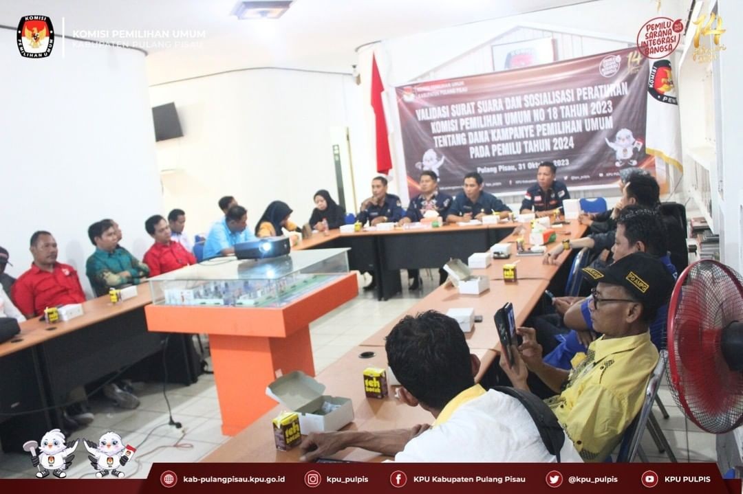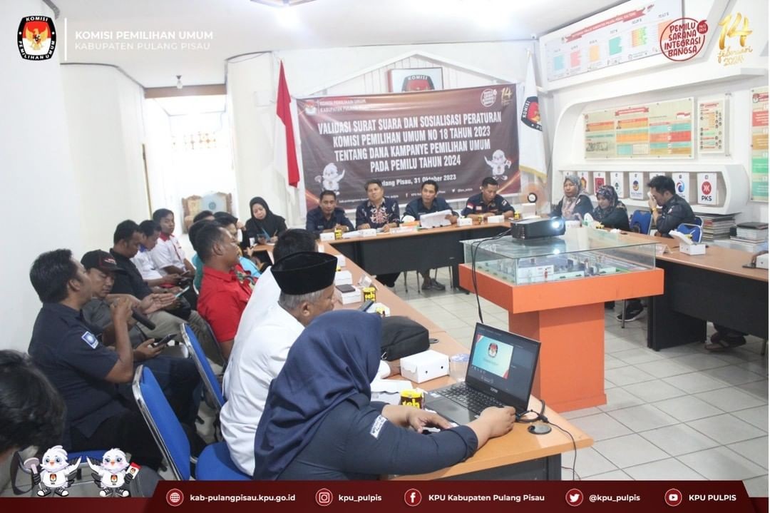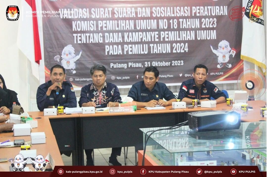 KPU Kabupaten Pulang Pisau mengadakan kegiatan Sosialisasi Peraturan Komisi Pemilihan Umum Nomor 18 Tahun 2023 tentang Dana Kampanye Pemilihan Umum pada Pemilu Tahun 2024.