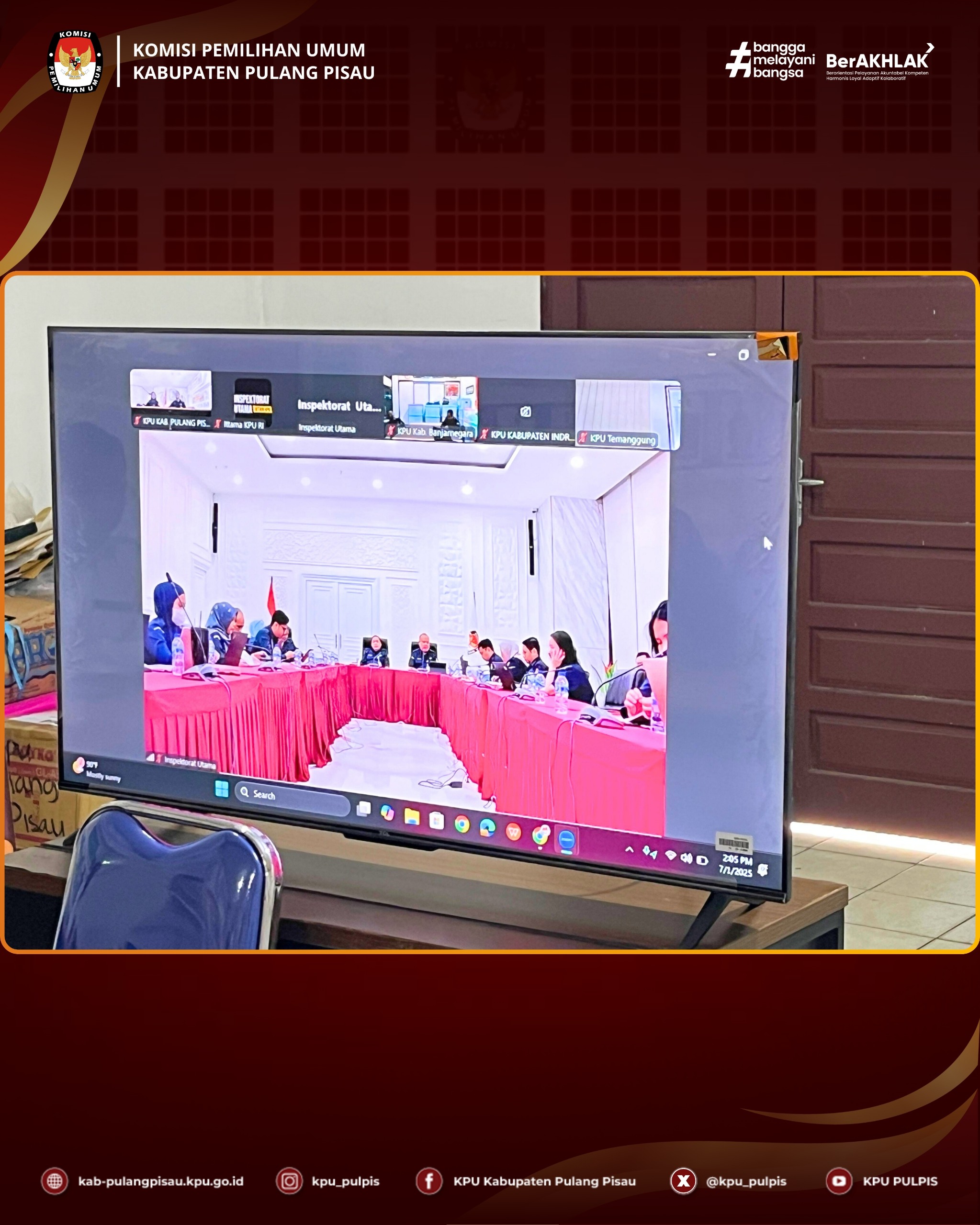 KPU Kabupaten Pulang Pisau mengikuti Zoom Meeting Entry Meeting Evaluasi Implementasi Sistem Akuntabilitas Kinerja Instansi Pemerintah (SAKIP) di lingkungan Sekretariat Jenderal KPU pada Selasa, 1 Juli 2025.