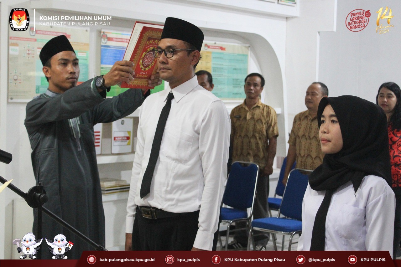 Pengambilan Sumpah dan Janji PAW Anggota PPS Maliku Baru dan PAW Anggota PPS Bahaur Hulu oleh Ketua Komisi Pemilihan Umum Kabupaten Pulang Pisau, Roby Hudin. Dalam sambutannya beliau menyampaikan Supaya Anggota PPS yang dilantik bisa menyesuaikan Ritme Pekerjaan sesuai Tahapan yang berjalan mengingat bahwa tahapan tinggal 130 hari lagi, menjadi Penyelenggara Pemilu harus berpedoman pada Sumpah dan Pakta Integritas yang sudah dinyatakan dihadapan sesama manusia dan Tuhan Yang Maha Esa. Penyelenggara Pemilu harus bekerja taat asas, menjaga integritas dan harus menjaga soliditas dalam tim kerja.