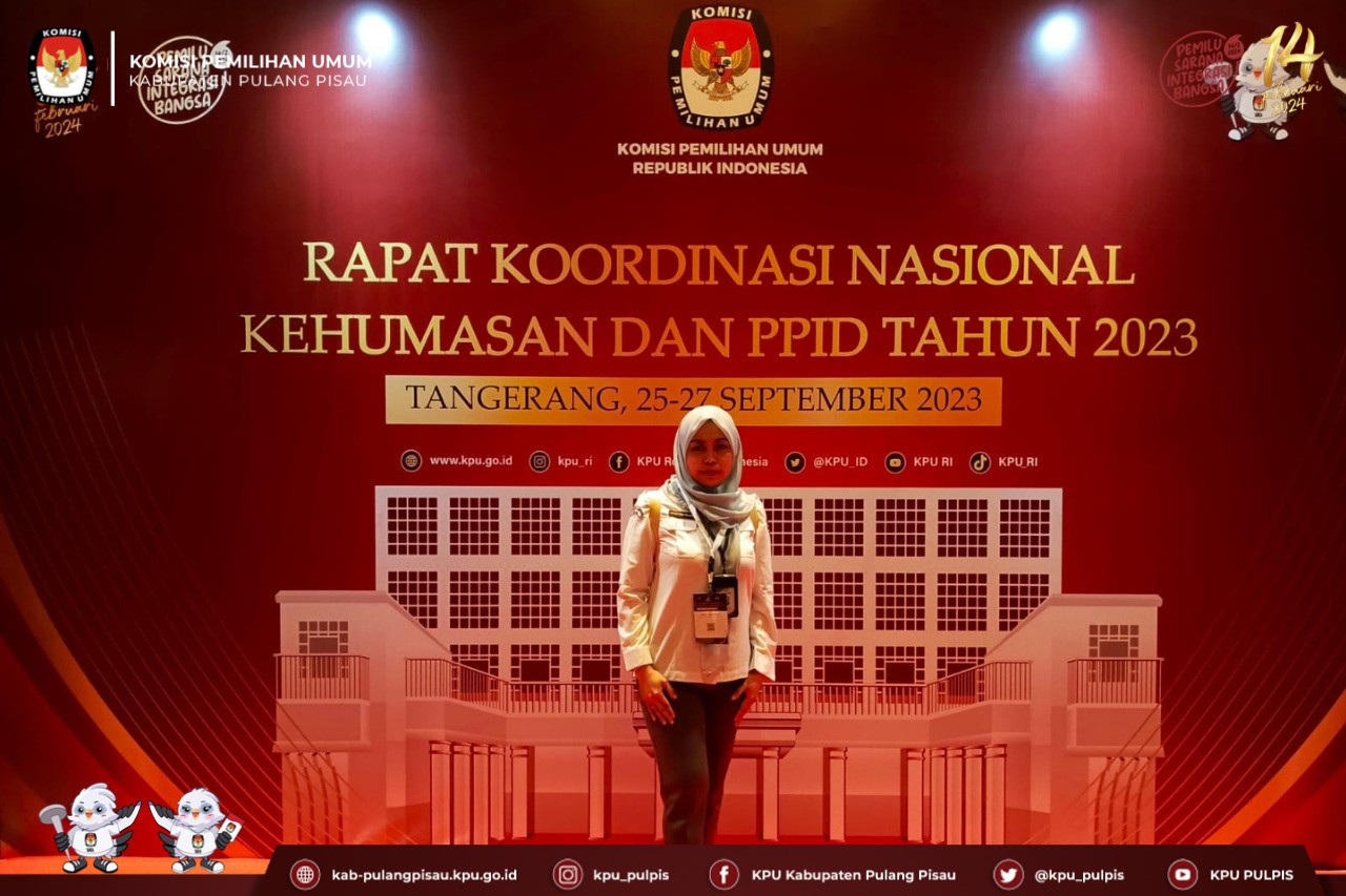 KPU Kabupaten Pulang Pisau mengukuti kegiatan Rapat Koordinasi Kehumasan dan PPID Tahun 2023 di Tengerang (25-27 September 2023). dalam hal ini rapat dihadiri oleh Kasubbag Teknis Penyelenggara Pemilu, Partisipasi dan Hubungan Masyarakat Ibu OKTARI PURNAMASARI.