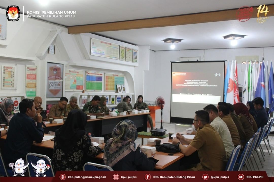 KPU Kabupaten Pulang Pisau menggelar Rapat Koordinasi Penetapan Lokasi Tempat Pemasangan Alat Peraga Kampanye dan Tempat Kampanye pada Pemilihan Umum Tahun 2024. Selasa (14/11/2023).