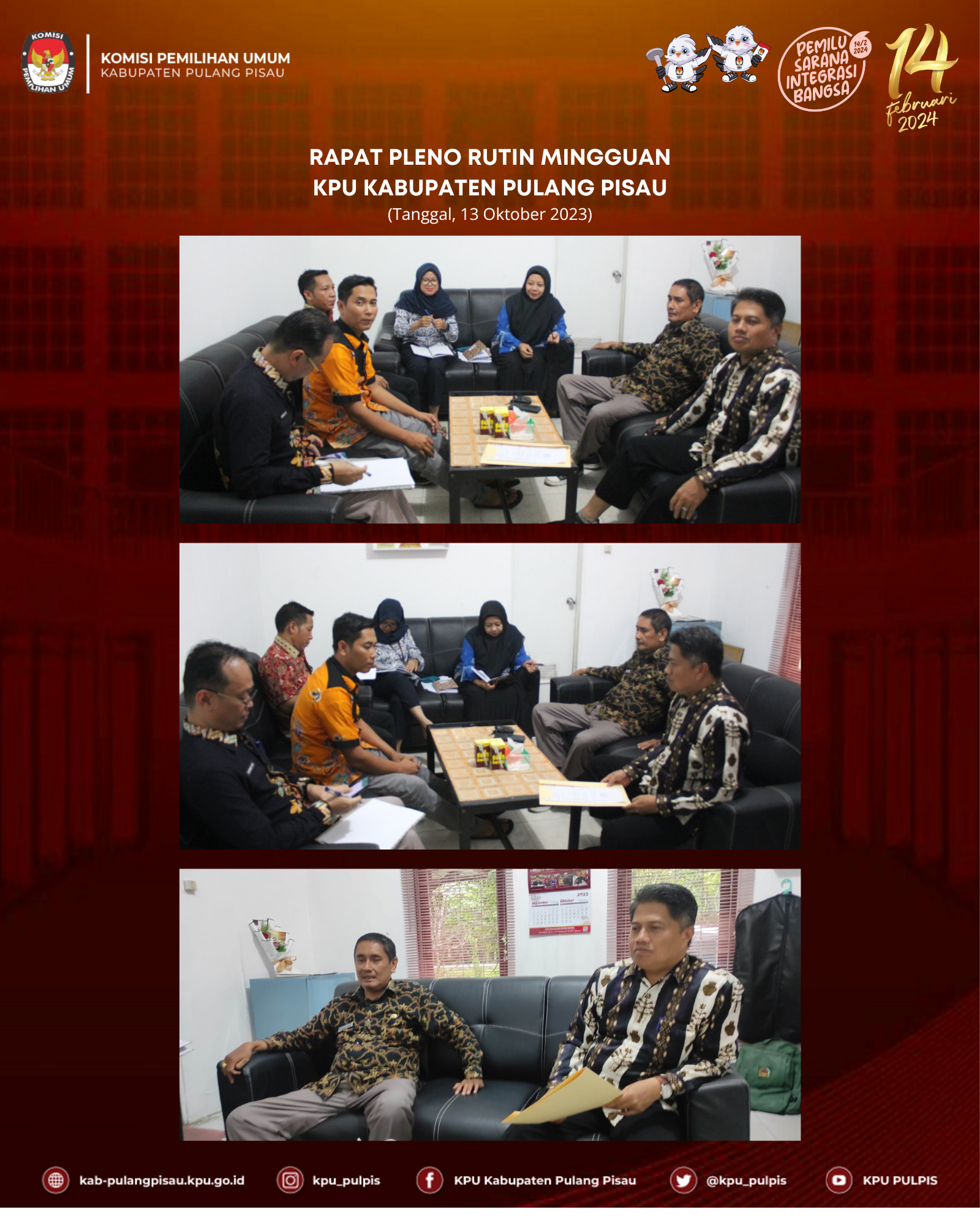 KPU Kabupaten Pulang Pisau Melaksanakan Rapat Pleno Rutin Mingguan di ruang Ketua KPU Kabupaten Pulang Pisau.