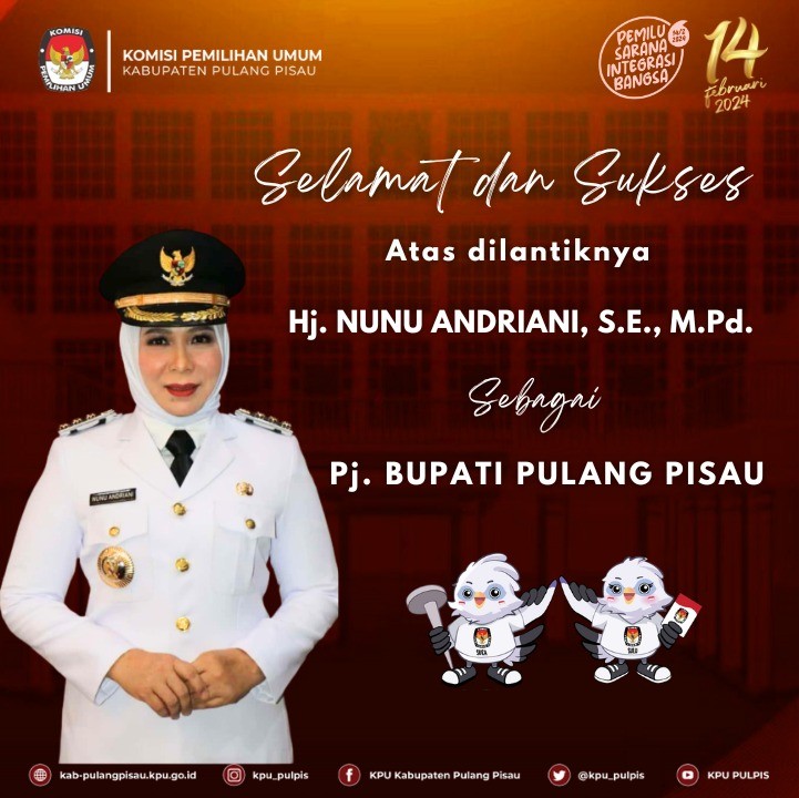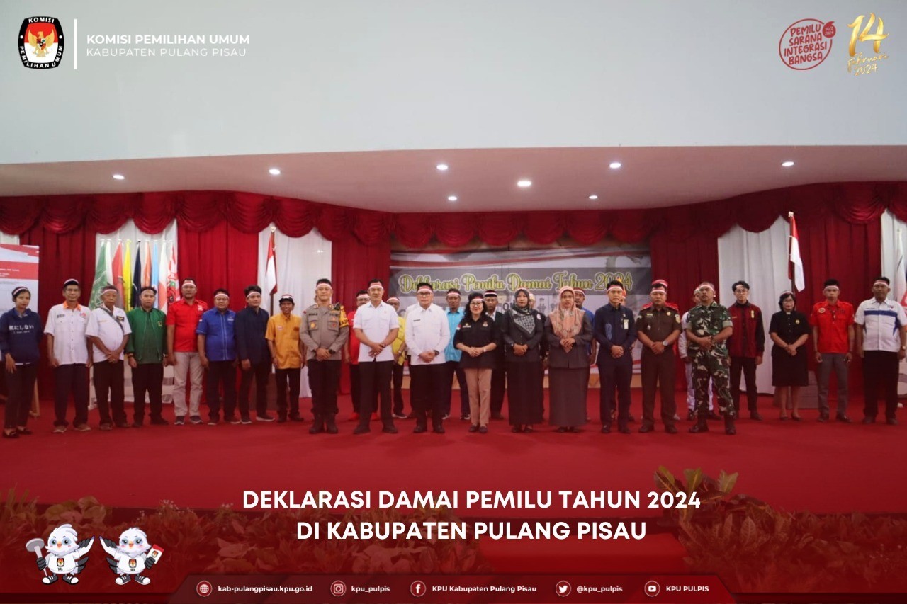 Anggota Komisi Pemilihan Umum Tity Yukrisna dalam tugasnya sebagai Koordinator Wilayah KPU Kabupaten Pulang Pisau, atas nama Ketua KPU Kabupaten Pulang Pisau menghadiri kegiatan Deklarasi Damai Pemilu Tahun 2024 yang dilaksanakan di gedung pertemuan umum Handep Hapakat Pulang Pisau. KPU Kabupaten Pulang Pisau bersama dengan Pemerintah Kabupaten Pulang Pisau, Forkompimda Pulang Pisau, Bawaslu Pulang Pisau dan perwakilan Partai Politik tingkat Kabupaten Pulang Pisau mendeklarasikan Pemilu Tahun 2024 yang aman dan damai. Dalam sambutannya Kapolres Pulang Pisau AKBP Mada Ramadita, S.I.K., mengajak kepada seluruh elemen masyarakat baik penyelenggara Pemilu maupun peserta Pemilu dan Masyarakat Kabupaten Pulang Pisau untuk bersama-sama menjaga dan mengamankan jalannya pemilu tahun 2024 secara komprehensif guna mewujudkan Pemilu yang berintegritas, aman dan damai di bumi Handep Hapakat yang kita cintai ini.