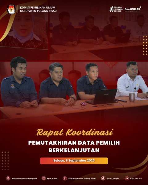KPU Kabupaten Pulang Pisau mengikuti Sosialisasi Pelaksanaan Pemantauan dan Evaluasi Kinerja Penyelenggaraan Pelayanan Publik (PEKPPP) Mandiri Instansional KPU Tahun 2025 yang dilaksanakan pada Kamis, 18 September 2025 melalui Zoom Meeting.