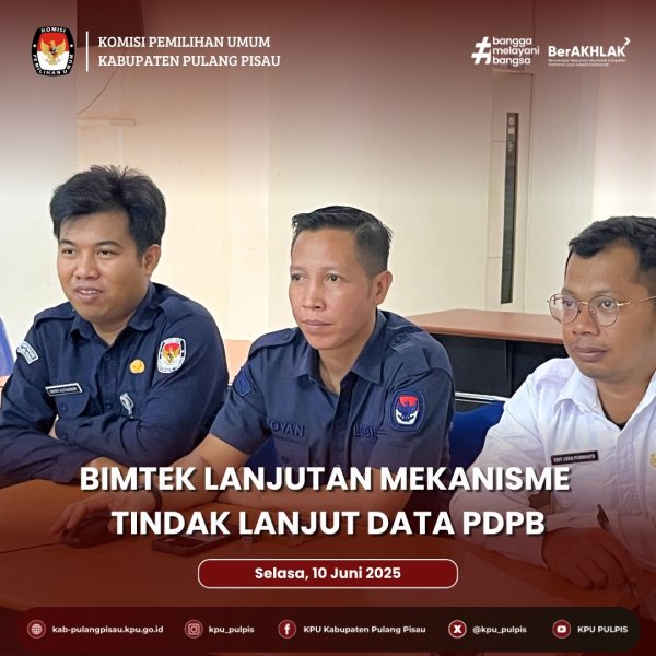 KPU Kabupaten Pulang Pisau mengikuti kegiatan Bimbingan Teknis lanjutan bagi seluruh operator KPU kabupaten Pulang Pisau, pada hari Selasa, tanggal 10 Juni 2025.