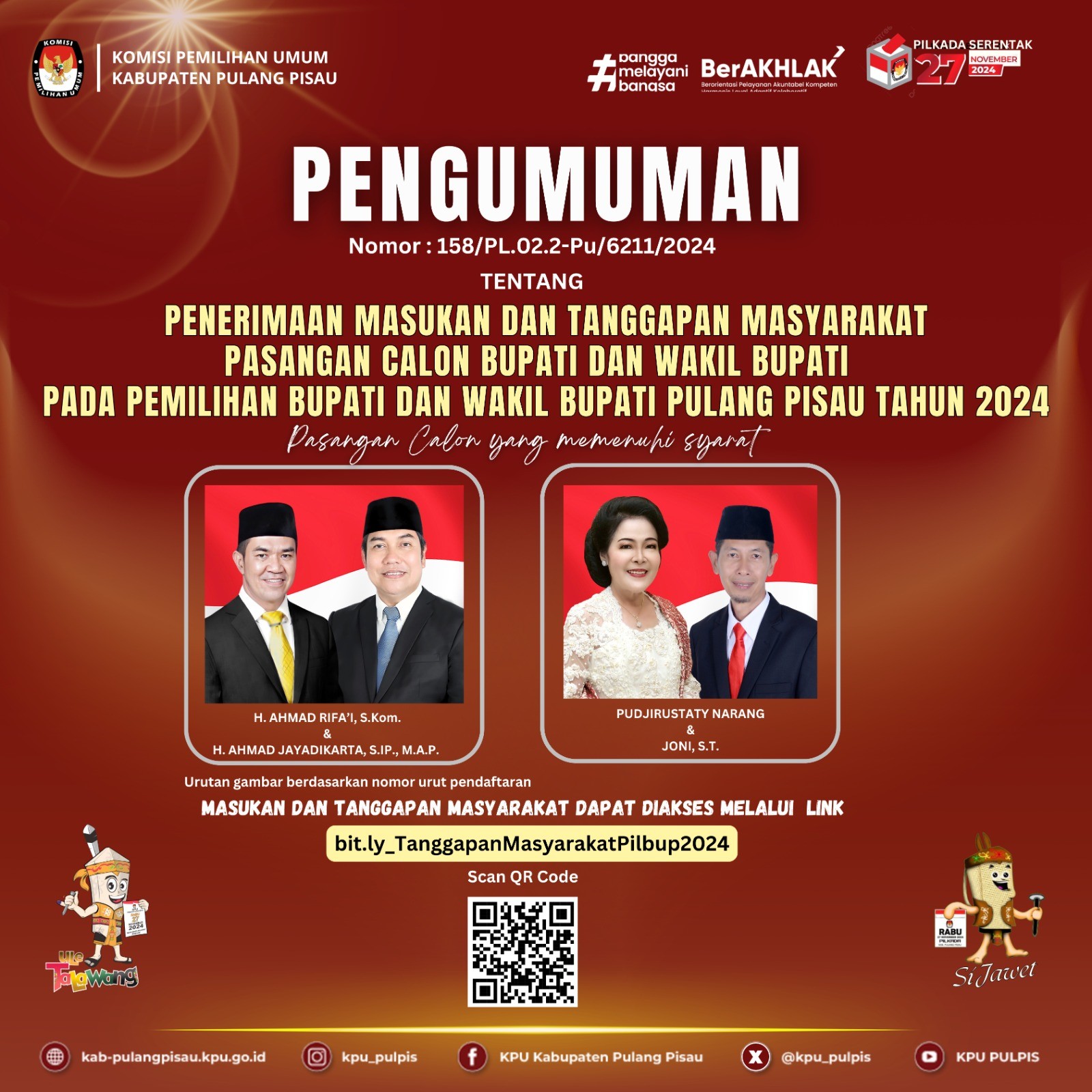 Rapat di buka oleh Ketua KPU Kabupaten Pulang Pisau Roby Hudin didampingi Anggota KPU Kabupaten Pulang Pisau Eko Susanto, Muhammad Zainurrohman, Royan Hanapi dan Vivi Herlina.Turut hadir Anggota KPU Provinsi Kalimantan Tengah Divisi Hukum dan Pengawasan Titi Yukrisna serta Anggota Bawaslu Provinsi Kalimantan Tengah Kadiv Pencegahan Parmas dan Humas Hj. Siti Wahidah, S.Ag., M.M